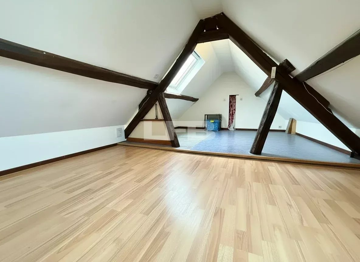 Le dernier niveau offre une grande chambre sous combles, offrant un volume spacieux et chaleureux.